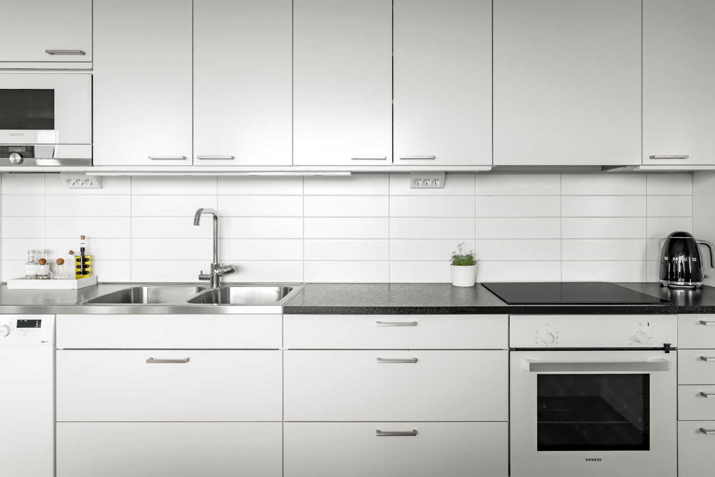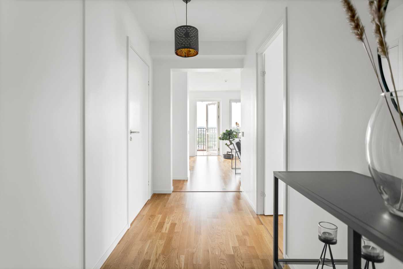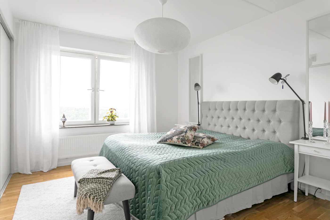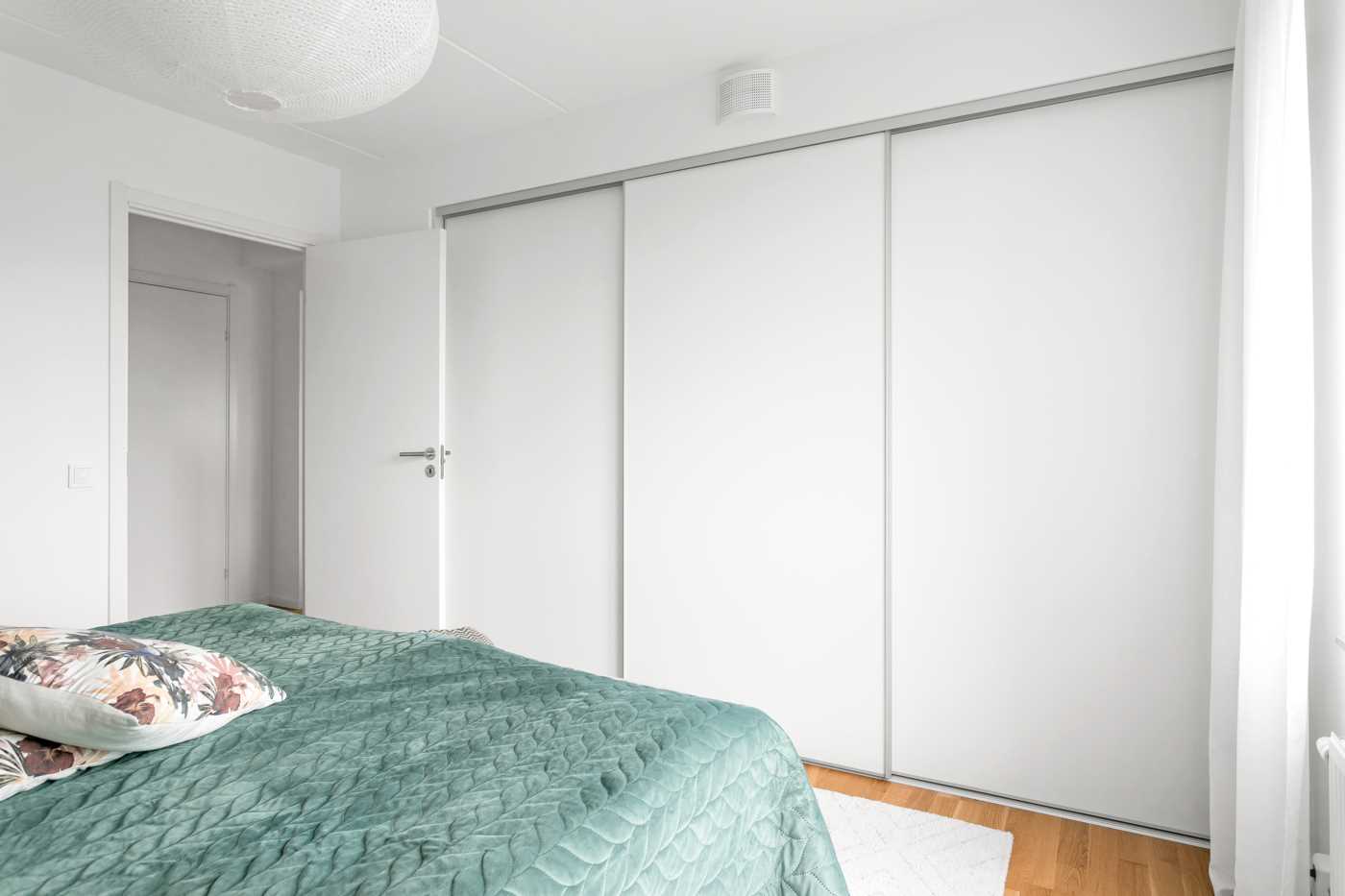 Lägenheten präglas av en modern och stilren design med fönster i två väderstreck som fyller hemmet med naturligt ljus. Det helkaklade badrummet är både smakfullt och funktionellt, utrustat med dusch samt kombinerad tvättmaskin och torktumlare. De vita väggarna och de genomgående parkettgolven skapar en enhetlig, varm och inbjudande atmosfär i hela bostaden.