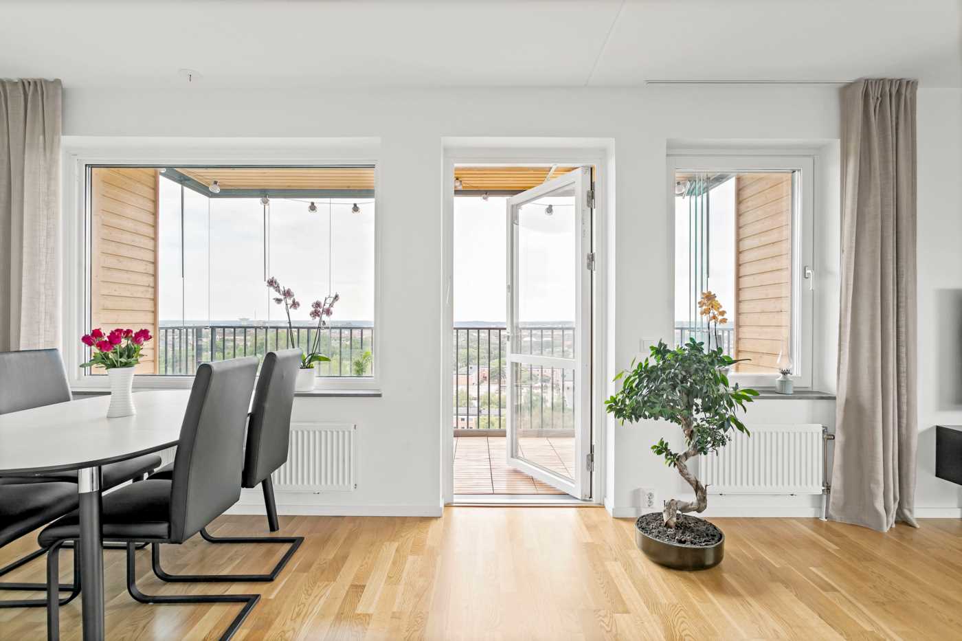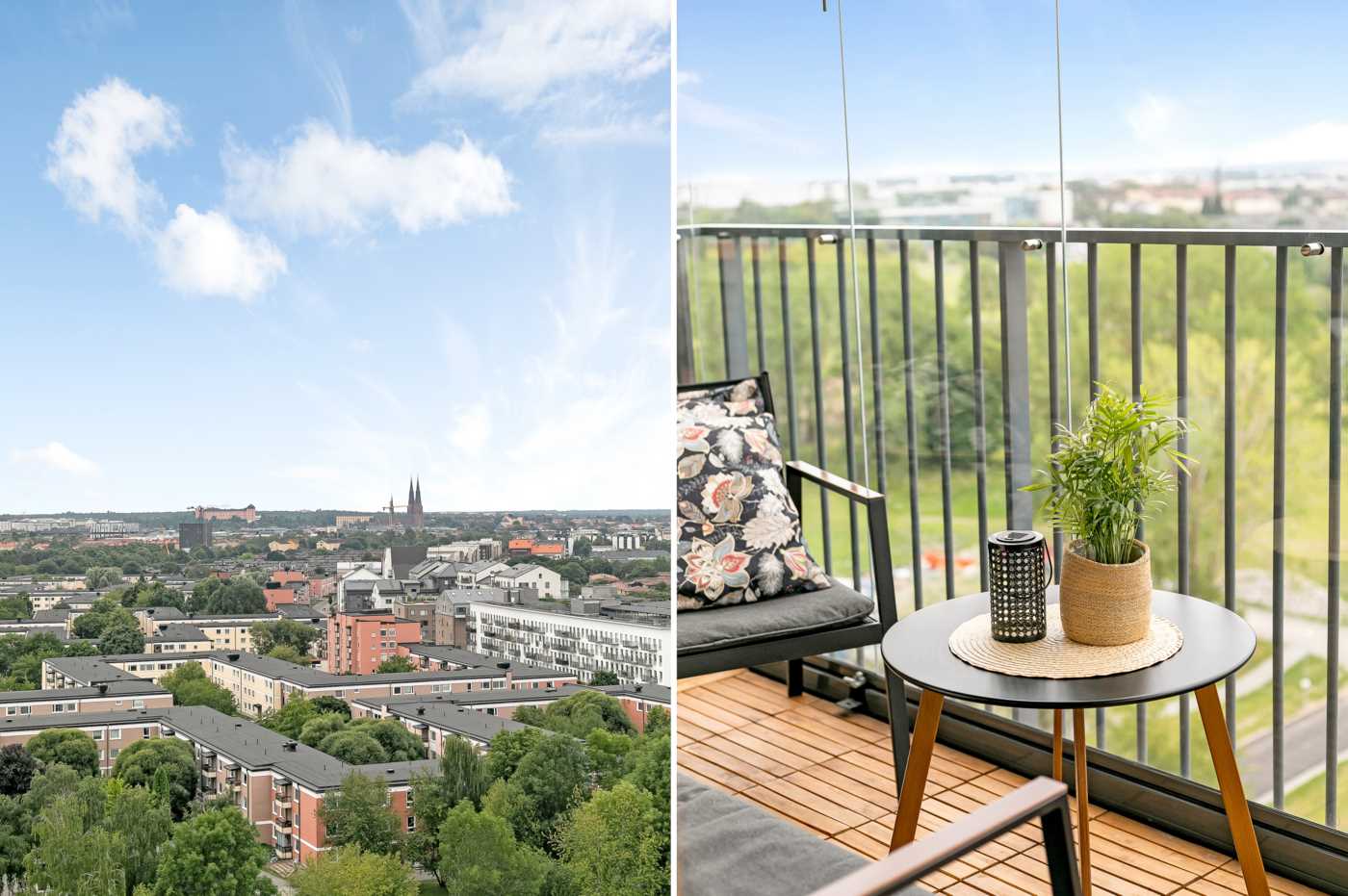 Välkommen till denna ljusa och välplanerade 3:a belägen högt upp i huset på våning 12 av 16. Högst upp i byggnaden, på våning 16, finns en fantastisk gemensam takterrass där du kan njuta av en hänförande utsikt över Uppsalas siluett och härlig eftermiddags- och kvällssol. Från bostaden och balkongen erbjuds ett generöst ljusinsläpp där solen följer lägenheten från soluppgång till solnedgång, samt en utsikt som skiftar med årstiderna med Gränbyparkens grönska som en stämningsfull och rogivande kuliss.