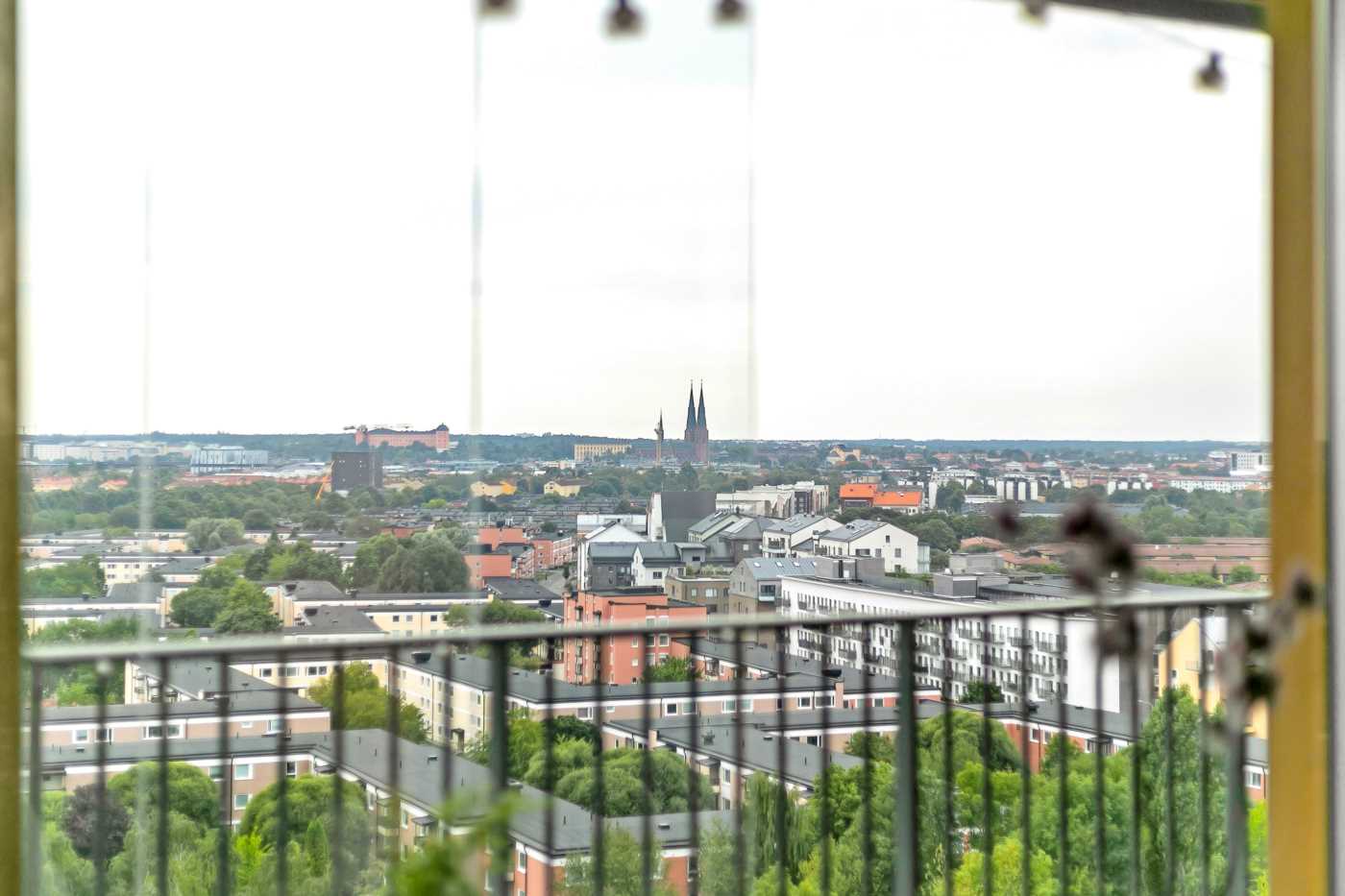 Bostadsrättsföreningen Uppsala View är Uppsalas högsta bostadshus och erbjuder en fantastisk gemensam takterrass på våning 16 med en oslagbar panoramavy över stadens silhuett. Huset är Svanenmärkt och håller genomgående hög kvalitet, bland annat med köksinredning från Marbodal. I den låga månadsavgiften ingår både TV och bredband, och i huset finns även garage som smidigt nås via hiss. I området byggs dessutom en ny simhall som beräknas stå klar till hösten 2026, vilket ytterligare stärker områdets attraktionskraft.