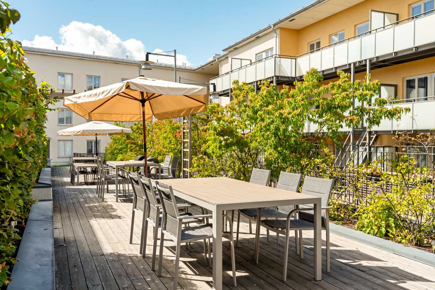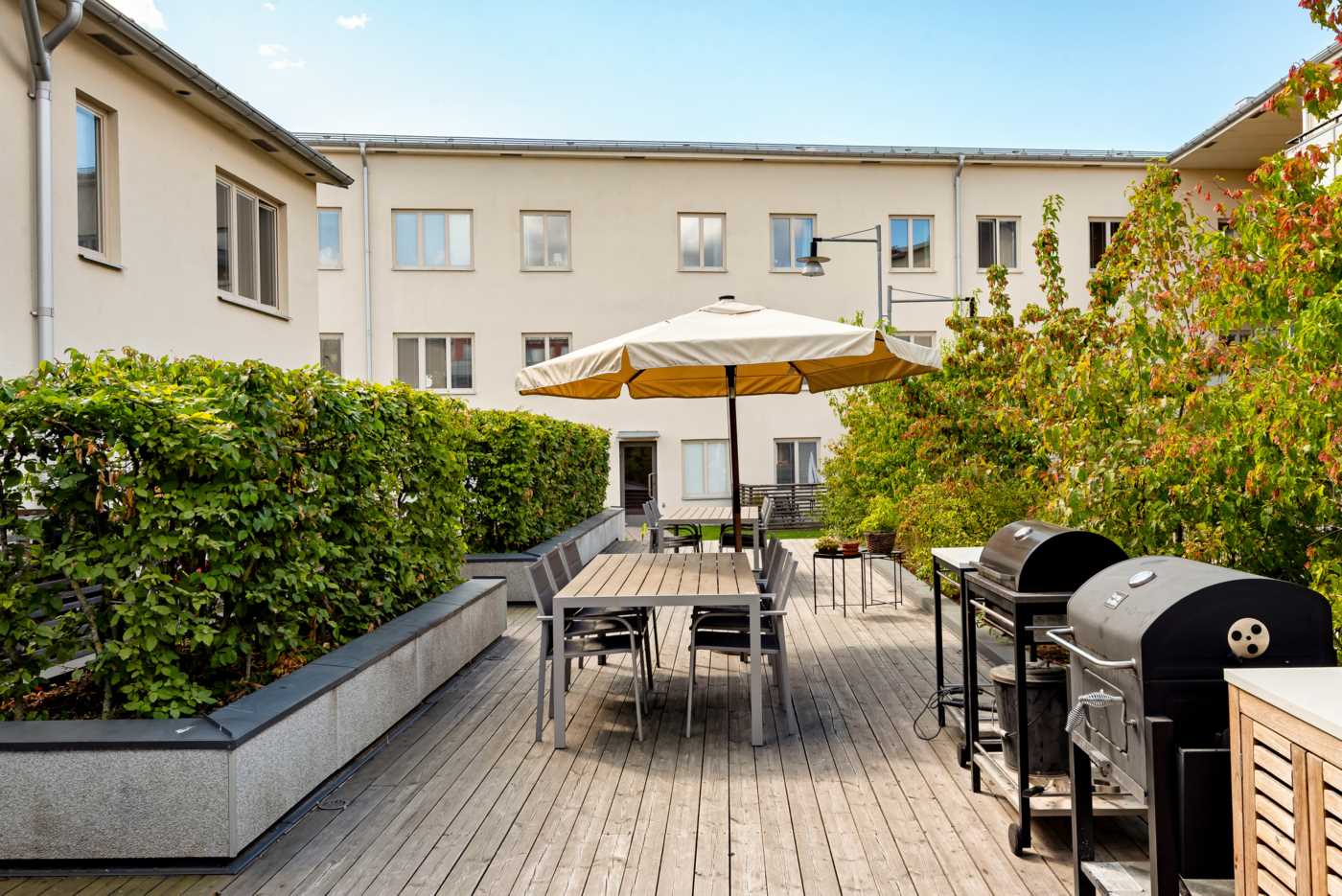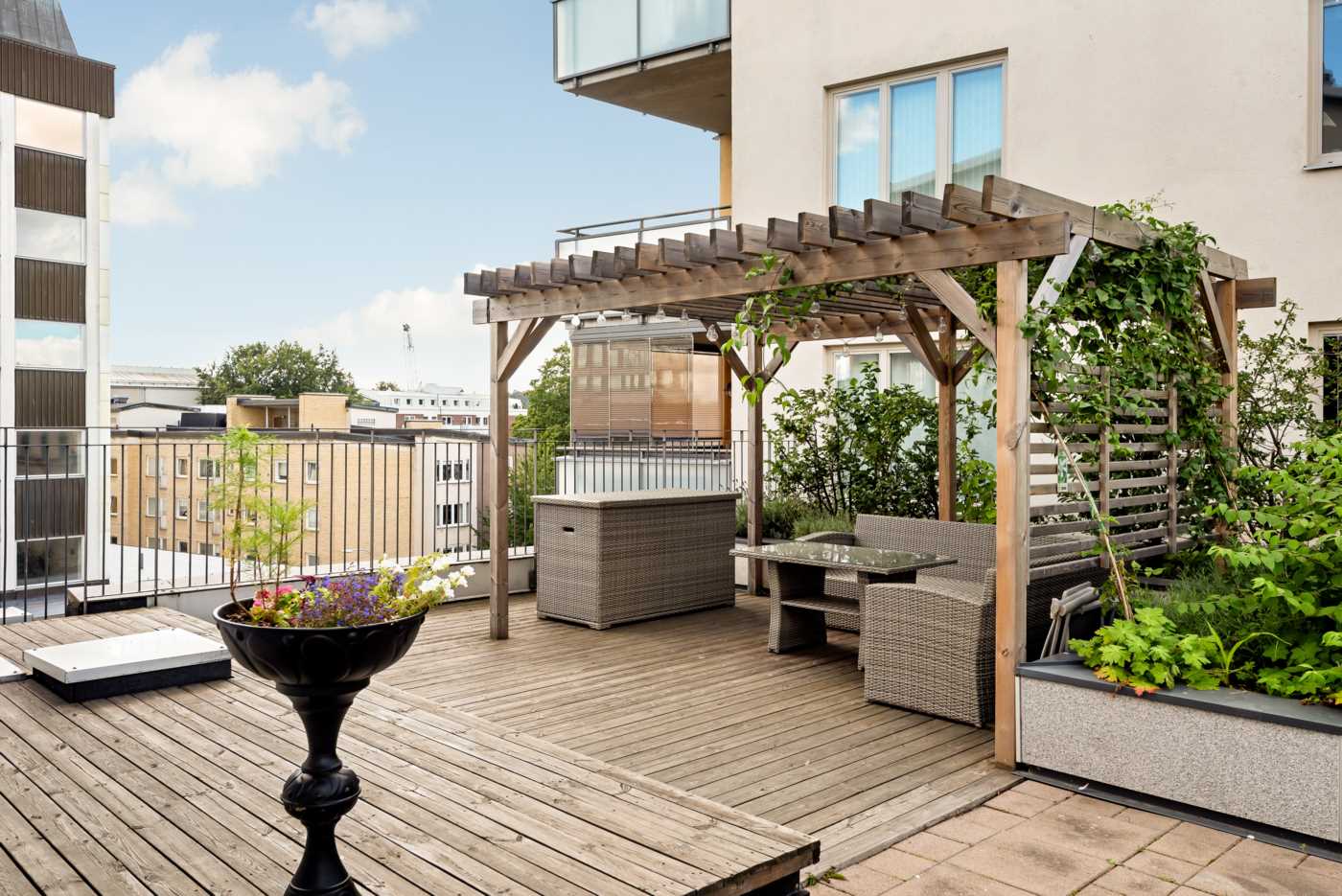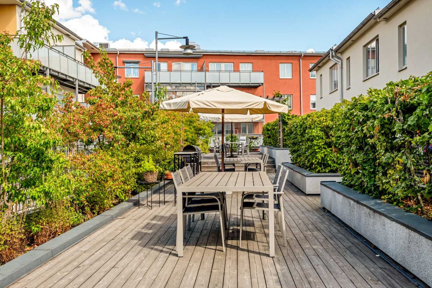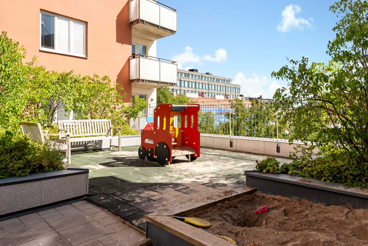 Ljus och fin 2:a med ett fantastiskt bekvämt pendlar- och cityläge. Här bor ni med direkt tillgång till den centrala stadens puls och fantastiska serviceutbud precis runt hörnet. Innergården, belägen på taket, erbjuder en riktig oas med flera gemensamma sittplatser, parasoller, grillmöjlighet och även en liten lekplats. Njut av en lugn stund i solen eller en härlig grillmiddag med familjen på denna unika takträdgård mitt i staden.