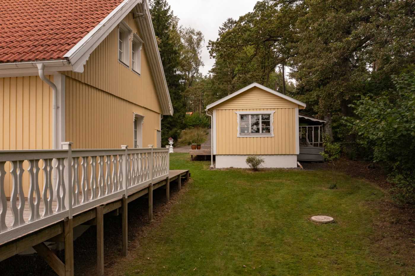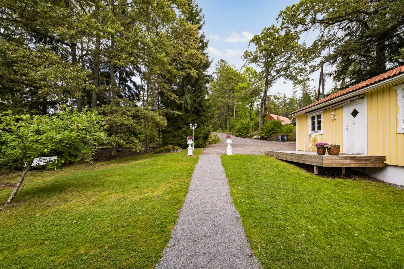 Garaget rymmer en bil och är sammanbyggt med en enklare carport, den grusade parkeringen rymmer hela fyra bilar. Tomten erbjuder stora gräsytor i fint och skyddat läge samt ett äppel- och ett päronträ. För den trädgårdsintresserade finns här gott om utrymme för att skapa sin drömträdgård.