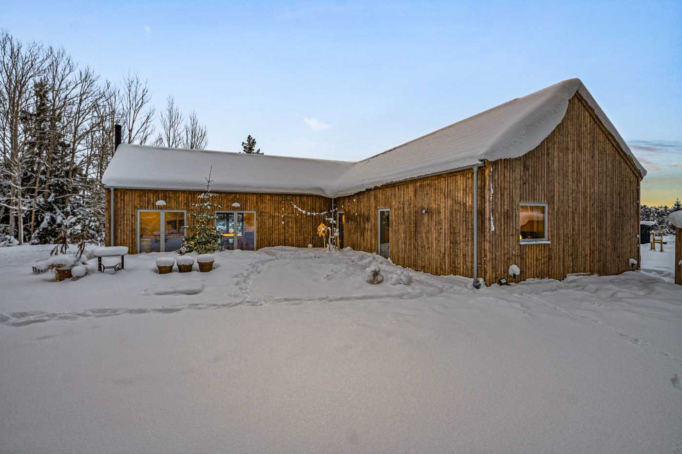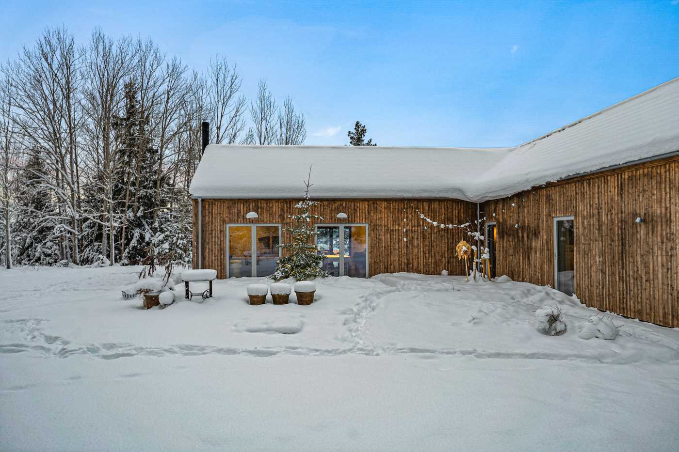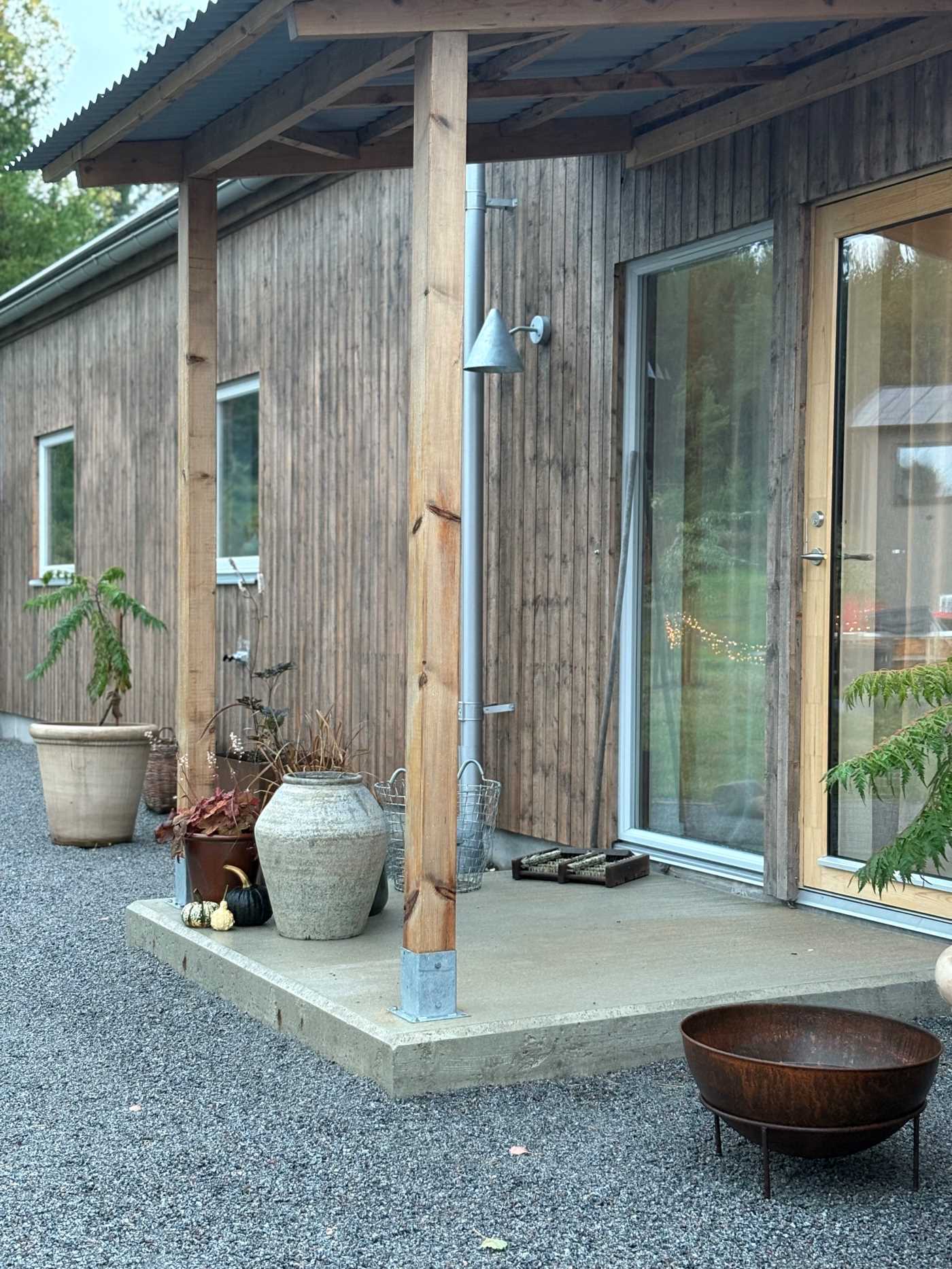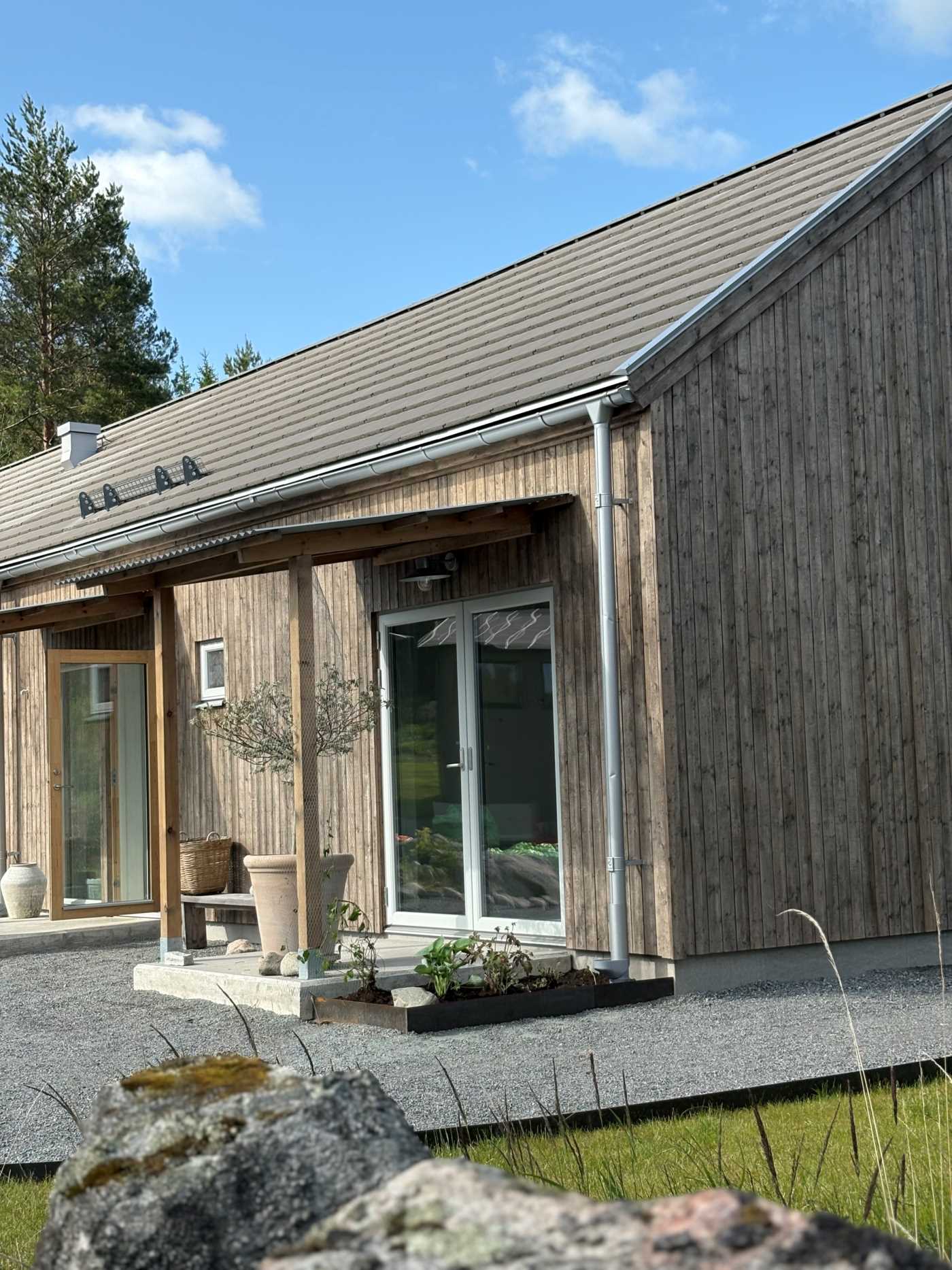 Varmt välkomna till Morby 414 och detta stilrena vinkelhus i ett plan om hela 160 kvm med med vackra och tidlösa materialval och en mycket väl genomtänkt planlösning. Här har säljarna med säker fingertoppskänsla skapat ett drömhem med utsökt estetik. Det är genomgående vackert slipade betonggolv och samtliga rum förutom de två barn sovrummen har fast monterade spotlights tak, som följer med huset. Bostaden har en luftig känsla med takhöjd om 2,6 m förutom i sällskapsdelen som har ryggåstak. Bostaden har vidare vacker utsikt med nästintill ingen insyn via stora läckra fönsterpartier med hela sex helglasade par- eller enkeldörrar som leder ut till trädgården.