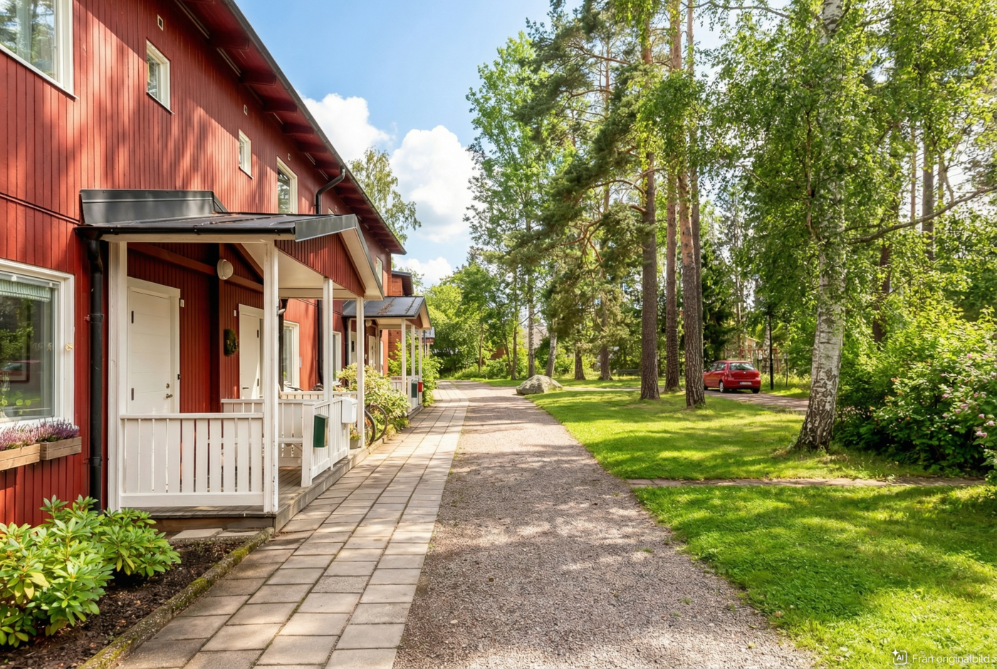 Välkommen till detta härliga radhus i två plan i bostadsrättsform. Rymliga 94,5 kvm boyta och med en lättskött trädgård samt en träaltan där plats för både loungemöbel och matbord finns.