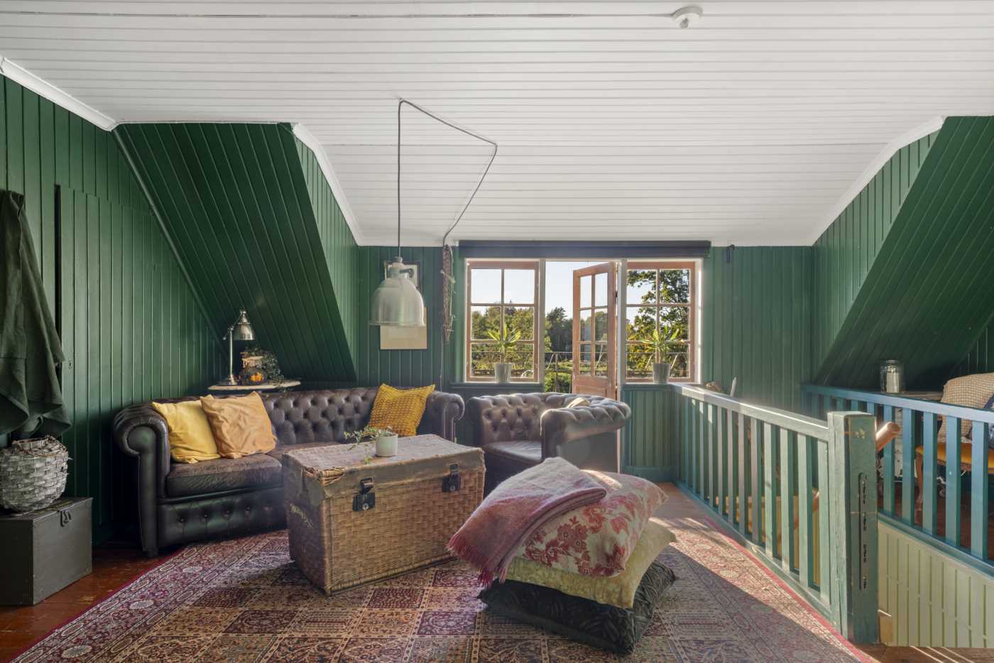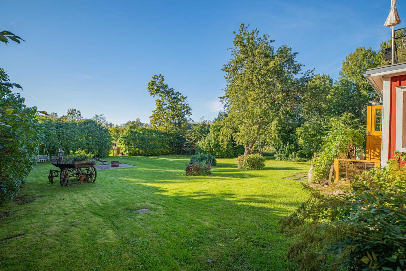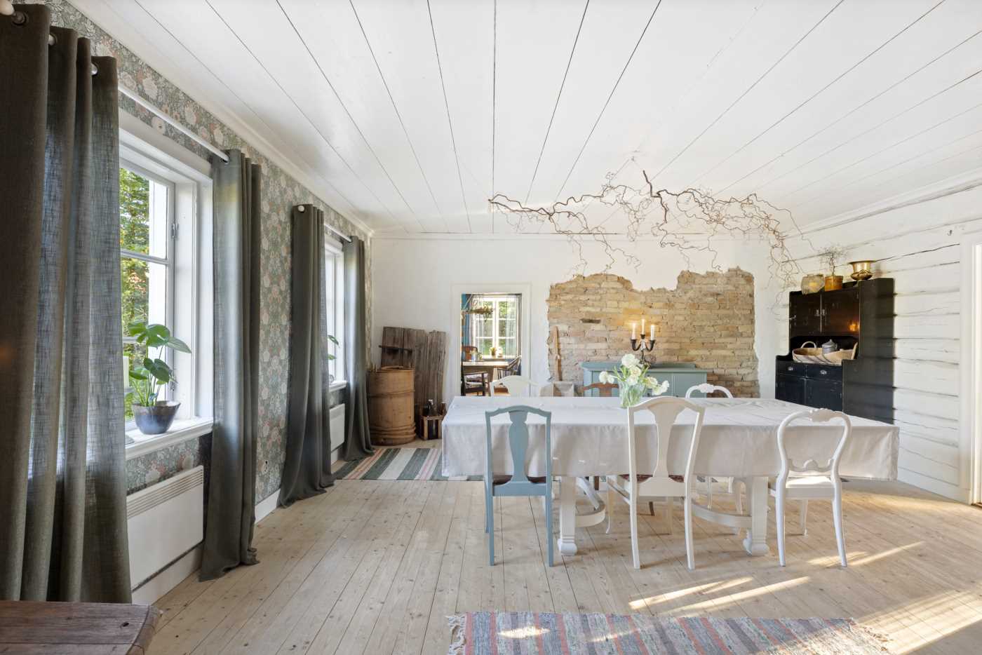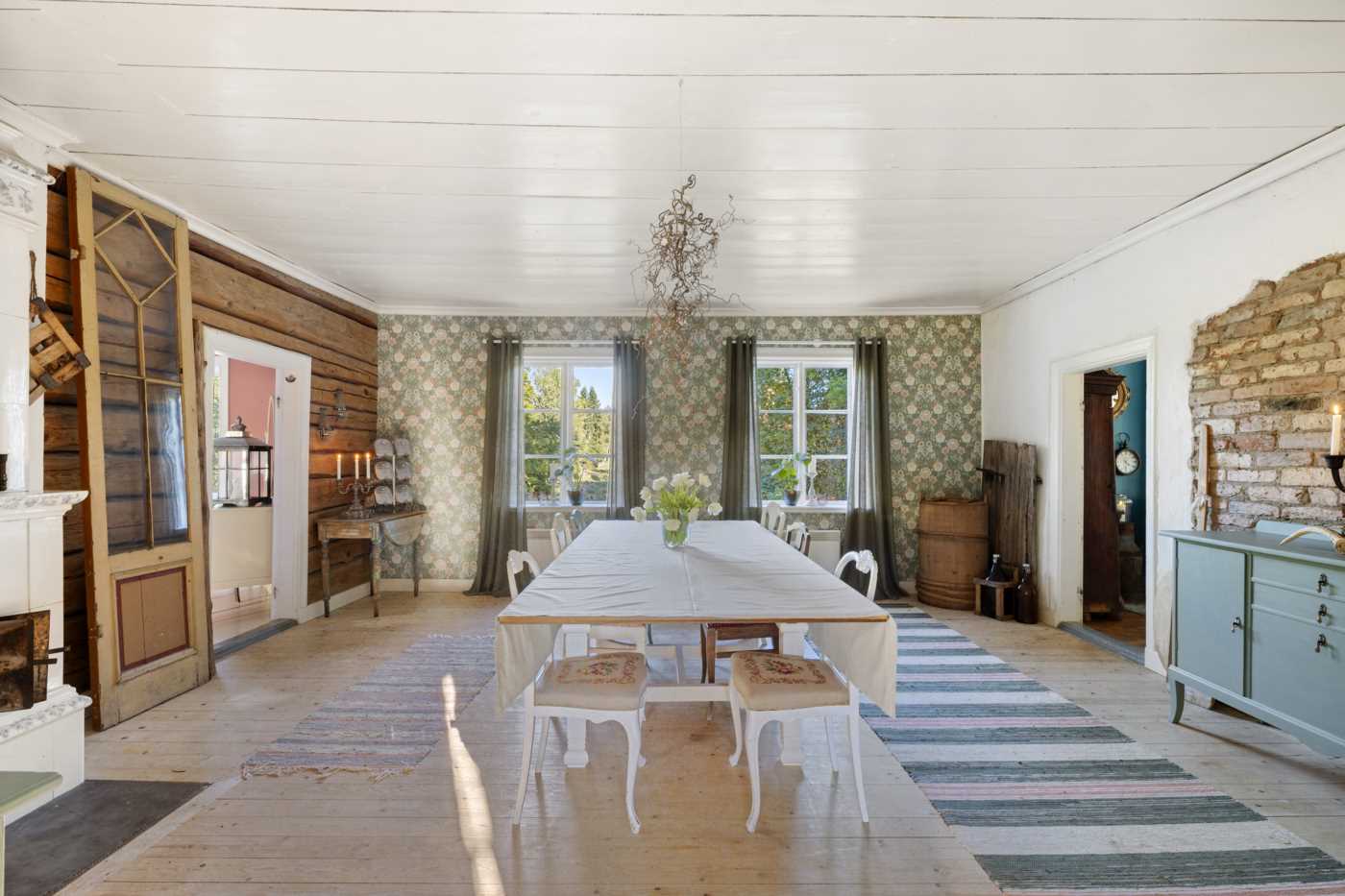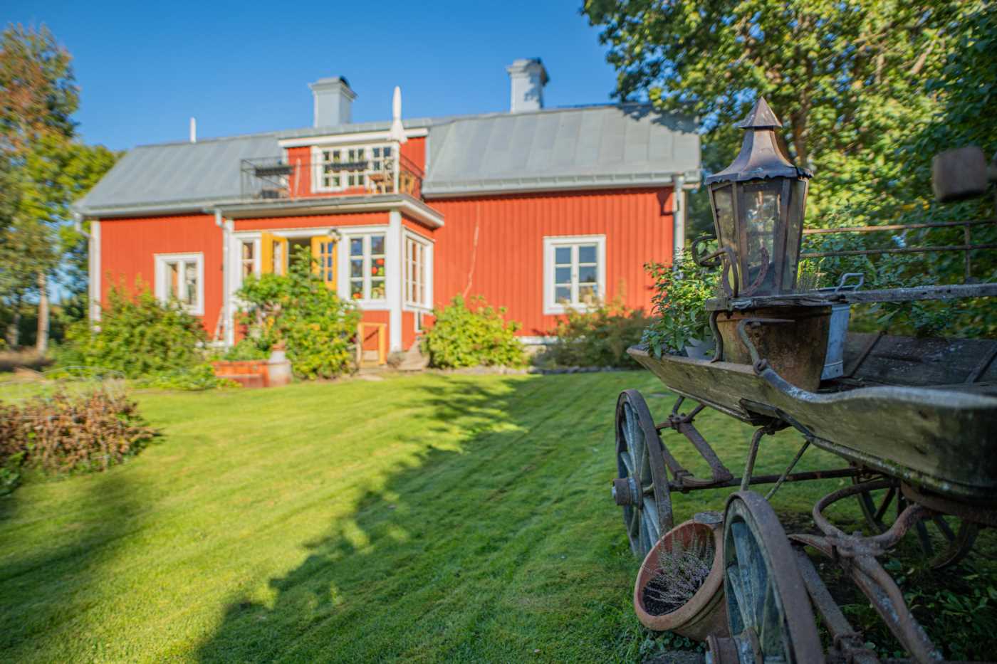 Varmt välkomna till denna fantastiska lilla gård om ca 2 ha med ett alldeles underbart och lagom stort boningshus från 1852. Huset har många tidsenliga attribut som entréplanets tre rum i fil med en större sal i mitten och ljuvligt ljusinsläpp med klassisk verandakänslan i entrén som även har bevarad platsbyggd förvaring. Entréplan rymmer även ett kök och liksom i entrén finns här delar av originalinredningen kvar samt en modernare vedspis. Spår av husets historia ses även i planlösningen på entréplan då delar av ytterligare ett kök med vedspis fortfarande finns kvar i anslutning till husets wc samt duschrum med tvättmaskin. Här finns möjlighet att skapa ett drömbadrum i gamla köket, kanske i äldre stil som matchar huset och med en värmande järnkamin efter köparens önskemål. Det övre planet erbjuder ett trivsamt allrum med utgång till en balkong med vacker och rogivande vy över tomten och landskapet. Vidare finns två stora sovrum och förutom fina förvaringsmöjligheter i kattvindar finns här ett större oinrett utrymme för den som önskar skapa ytterligare ett rum. I huset finns många originaldetaljer bevarade som flertalet vackert spröjsade fönster och tre fungerande eldstäder samt ytterligare två som går att renovera.