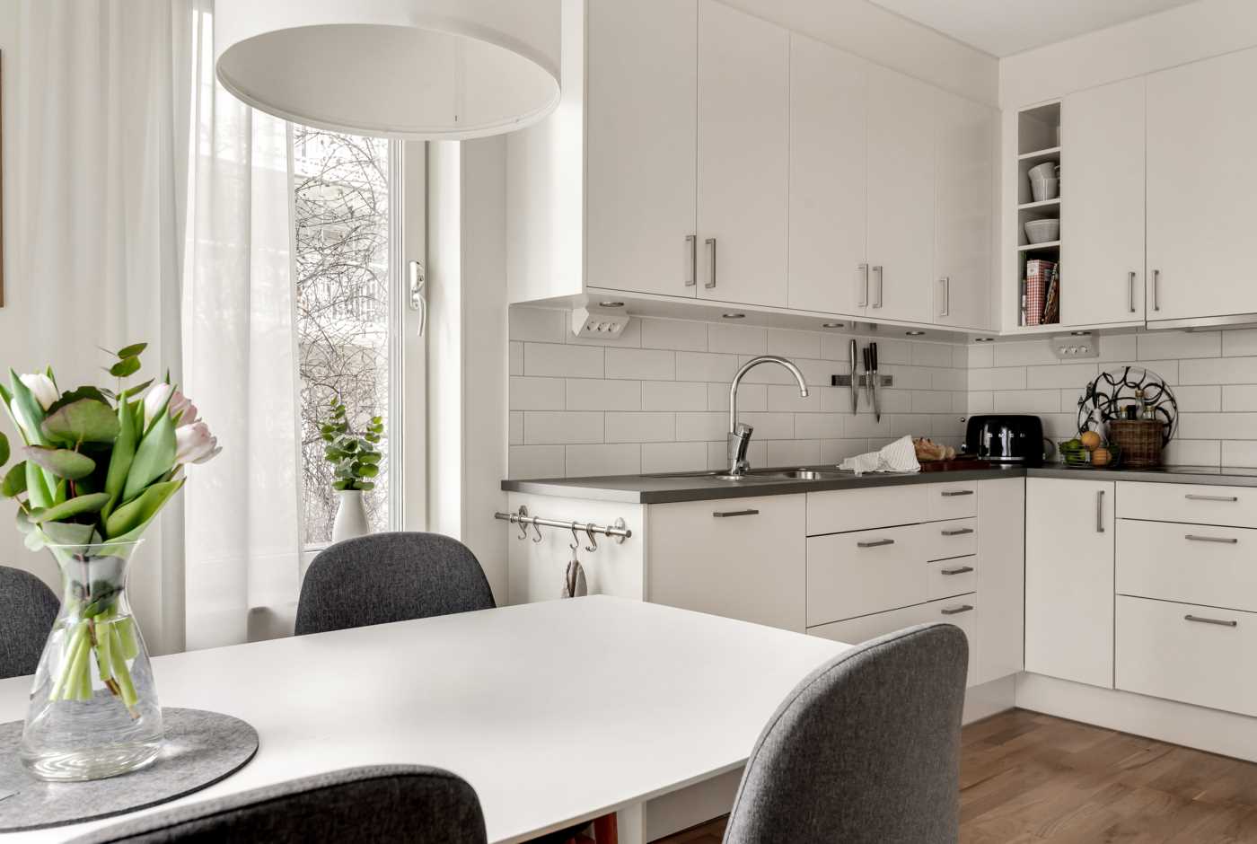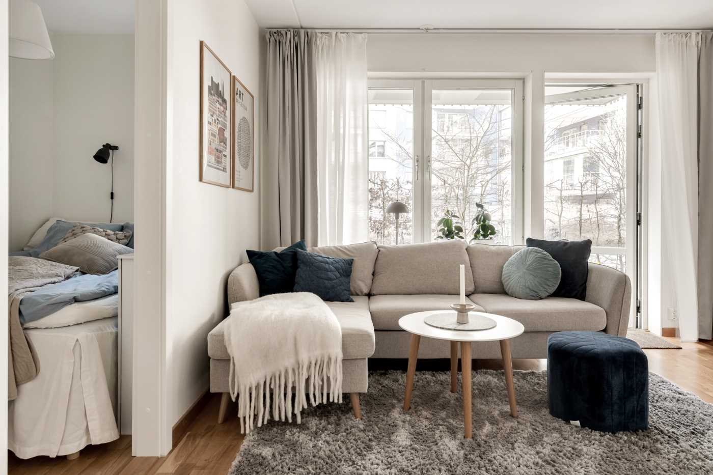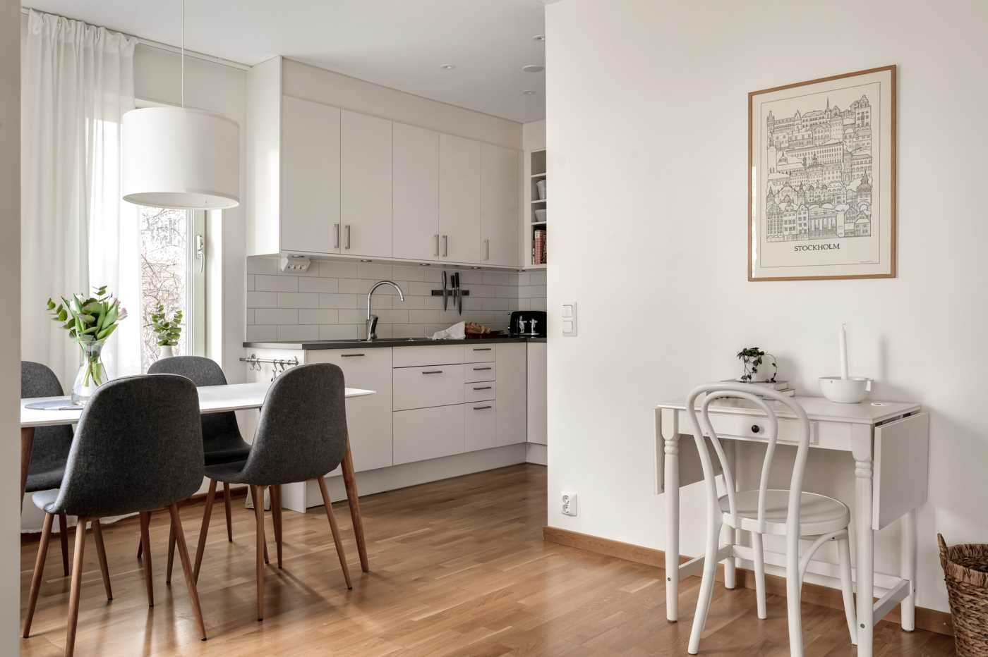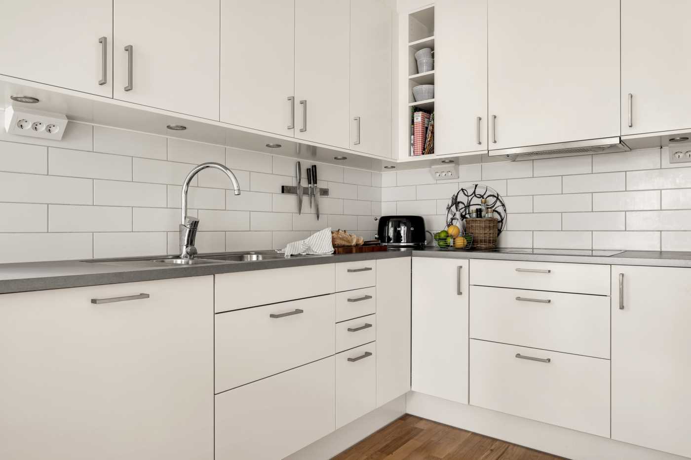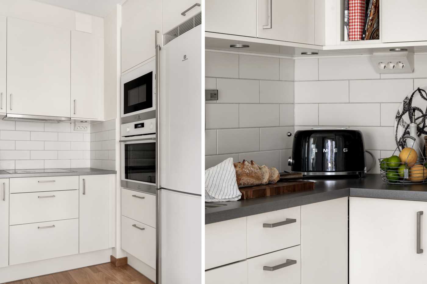 När du kliver in i detta ljusa och välplanerade hem möts du av ett fint parkettgolv som löper genom samtliga rum och skapar en enhetlig och stilren känsla i hela bostaden. Köket är både modernt och praktiskt med en induktionshäll, kyl/frys, mikro, ugn, diskmaskin och fläkt som ger dig allt du behöver för att laga mat och baka med stil och enkelhet. Här kan du njuta av att umgås med vänner och familj i en trivsam miljö både inomhus och på den egna stora uteplatsen. Badrummet är rymligt och erbjuder en kombinerad tvättmaskin- och torktumlare för att göra vardagen enklare och mer bekväm. Vidare finns sovalkoven med plats för sängen samt inbyggd garderob med skjutdörrar.