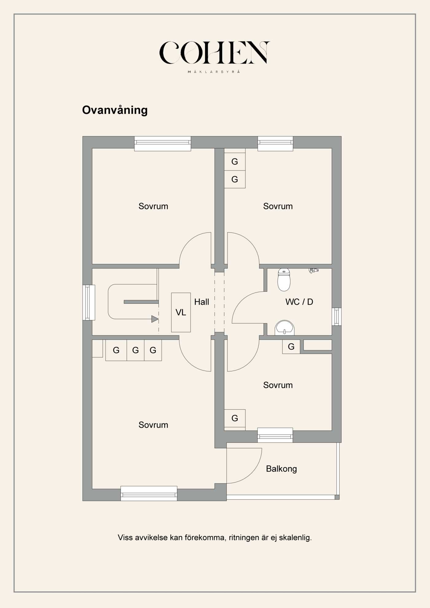 Huset är fördelat över två genomtänkta våningar. På övre plan möts du av tre rymliga sovrum – idealiska för barnen att få sina egna rum – samt ett ljust och inbjudande allrum som med lätthet blir familjens mysiga filmhörna eller barnens lekyta. Här finns också ett snyggt badrum med badkar, där kvällsbadet blir en naturlig del av familjens rutiner.