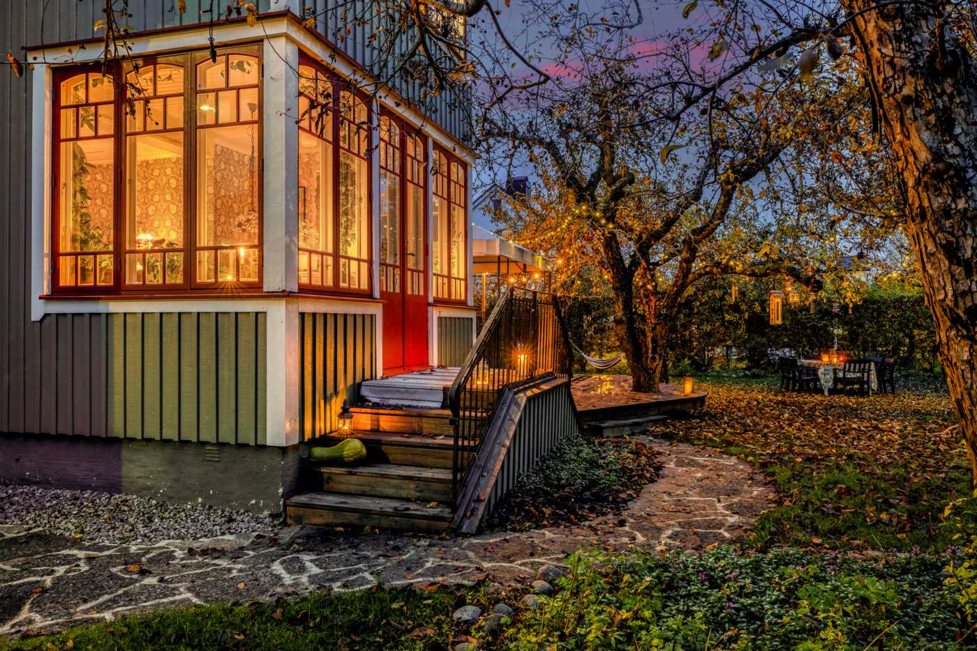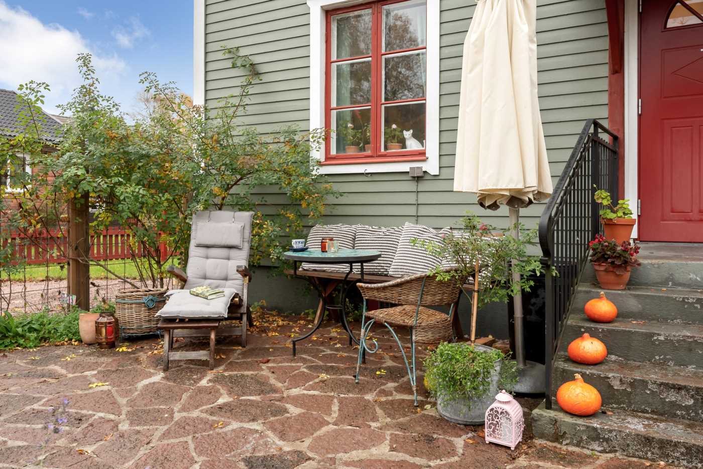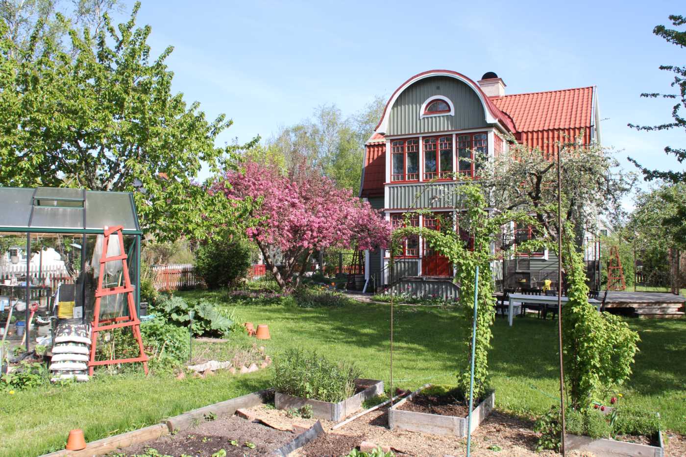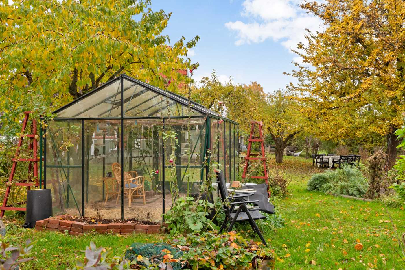 Trädgården omfattar 1157 kvm och är en grönskande oas med fruktträd och bärbuskar. Här finns även ett växthus som inbjuder till odling och säsongsnjutning.