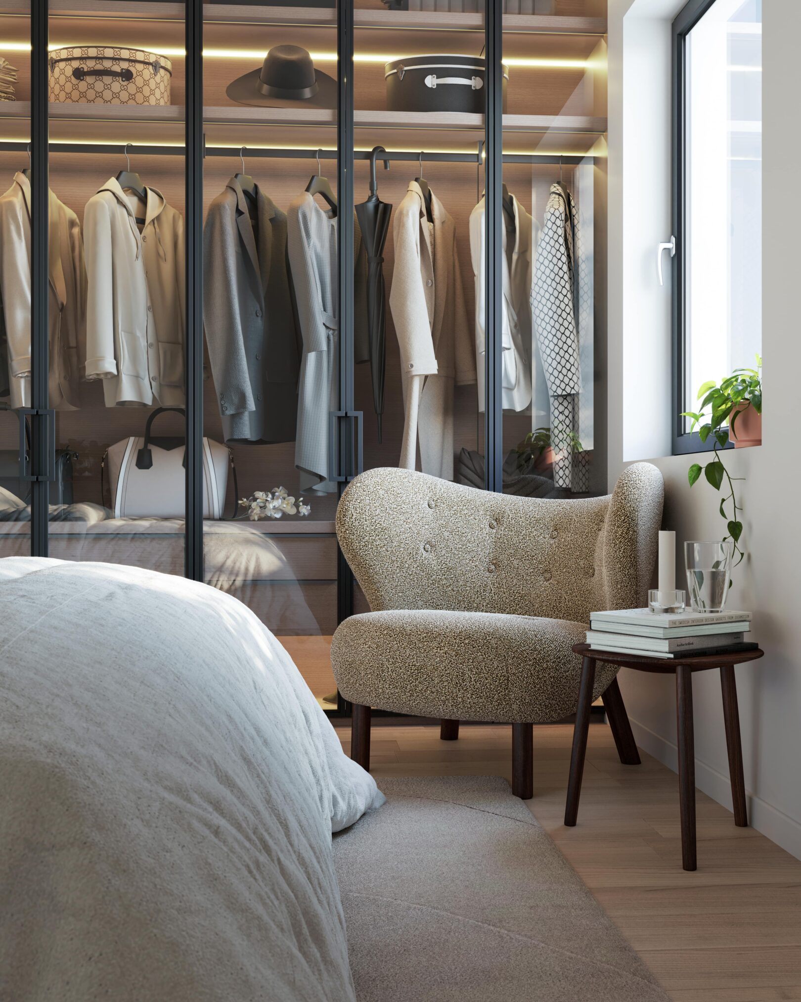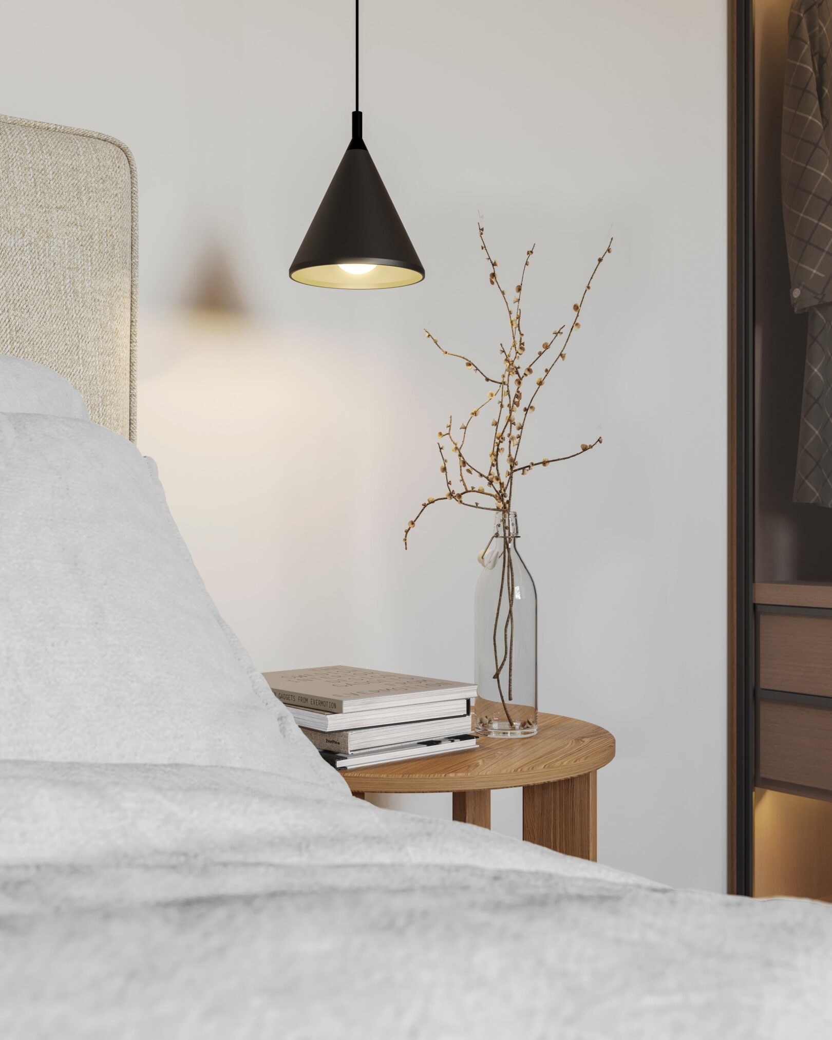 Nedervåningens tyngdpunkt ligger i det enskilda. Genom att separera de gemensamma ytorna från de privata ges utrymme för att flera aktiviteter ska kunna pågå parallellt, utan att någon blir störd. Här finns tre sovrum, ett allrum, badrum med tvättmaskin och torktumlare, samt ett rymligt förråd.