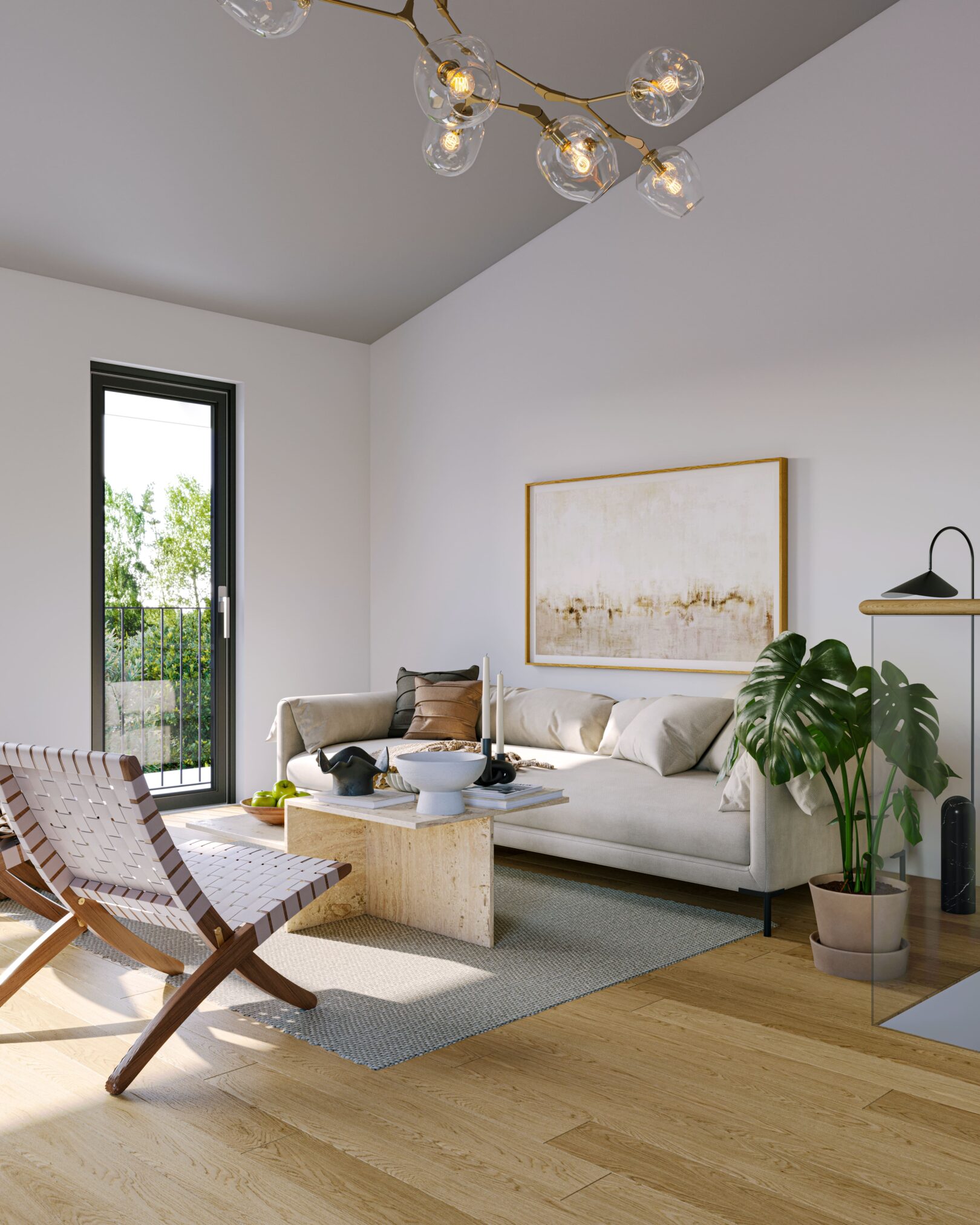 Entrévåningen är vigd åt samvaro med plats för både familj och vänner. Stig innanför ytterdörren och möt kombinationen av ett socialt och funktionellt boende. Kök och vardagsrum ligger på entréplan i öppen planlösning, medan allrummet på suterrängplanet har direkt anslutning till den fint inramade uteplatsen som vetter mot en trevlig innergård.
